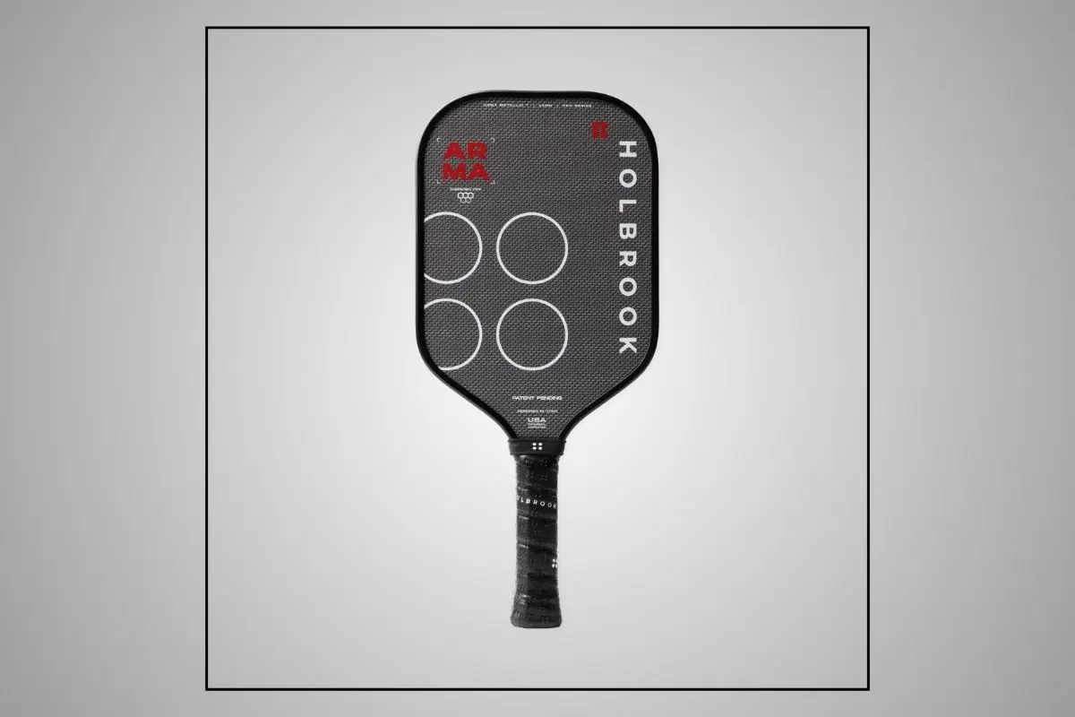 Arma T Metallic 14 Pickleball Paddle: Holbrook’s newest release, the Arma T Metallic 14 mm pickleball paddle, brings a bold design to the court with a focus on power, spin, and forgiveness. This paddle stands out from others in the market thanks to its unique dual-density core, metallic surface, and built-in lead weighting system.