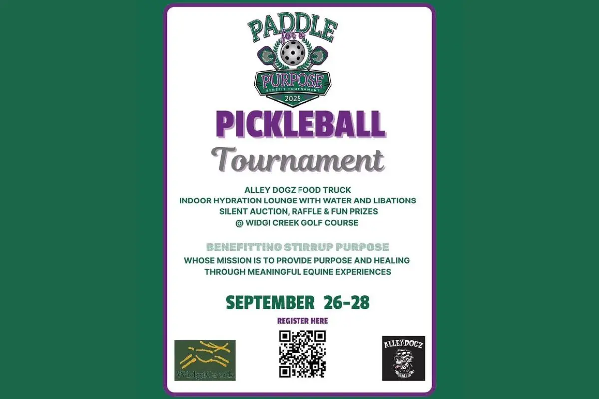 Megan Sinclair interviewed Penny Campbell of Stirrup Purpose about their resources and the upcoming Pickleball Benefit Tournament. The event will run September 26-28 at Widgi Creek Pickleball, supporting the organization’s programs. Community members of all skill levels are invited to participate in the three-day fundraiser.