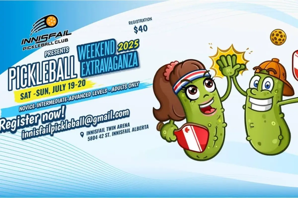 The 2nd Annual Innisfail Pickleball Weekend Extravaganza took place on July 19-20 at the Innisfail Twin Arena, drawing 60 players from central Alberta. The event featured competitive play, clinics, and fun awards like giant cookies, promoting pickleball as a sport for all ages and skill levels.