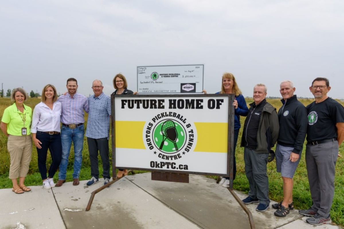Okotoks’ New Pickleball and Tennis Centre Expansion: The planned Okotoks Pickleball & Tennis Centre received a major boost with a generous $250,000 donation from the Integrity Group. On August 16, representatives from Integrity, the proposed centre, and the Town of Okotoks gathered at the site on 32 Street to announce the pivotal contribution.