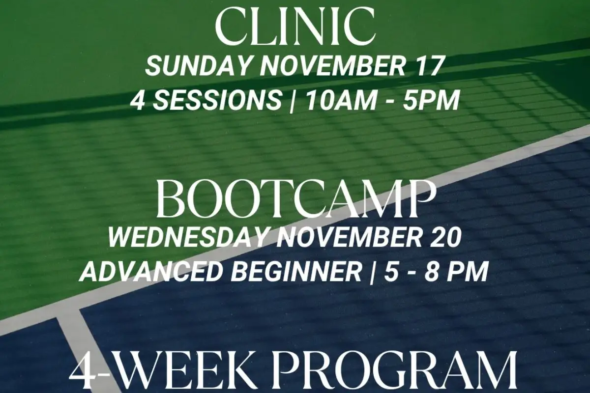 The clinic will feature four sessions spread throughout the day, starting with a beginner-focused introduction to the sport, followed by advanced beginner drills, intermediate sessions focusing on third-shot strategies, and an advanced practice aimed at players looking to play like a 5.0-level competitor. These sessions are designed to provide players with both the tools and the confidence to elevate their play, no matter their current skill level. The cost for the beginner clinics is set at $50, while the intermediate-level sessions are priced at $60.