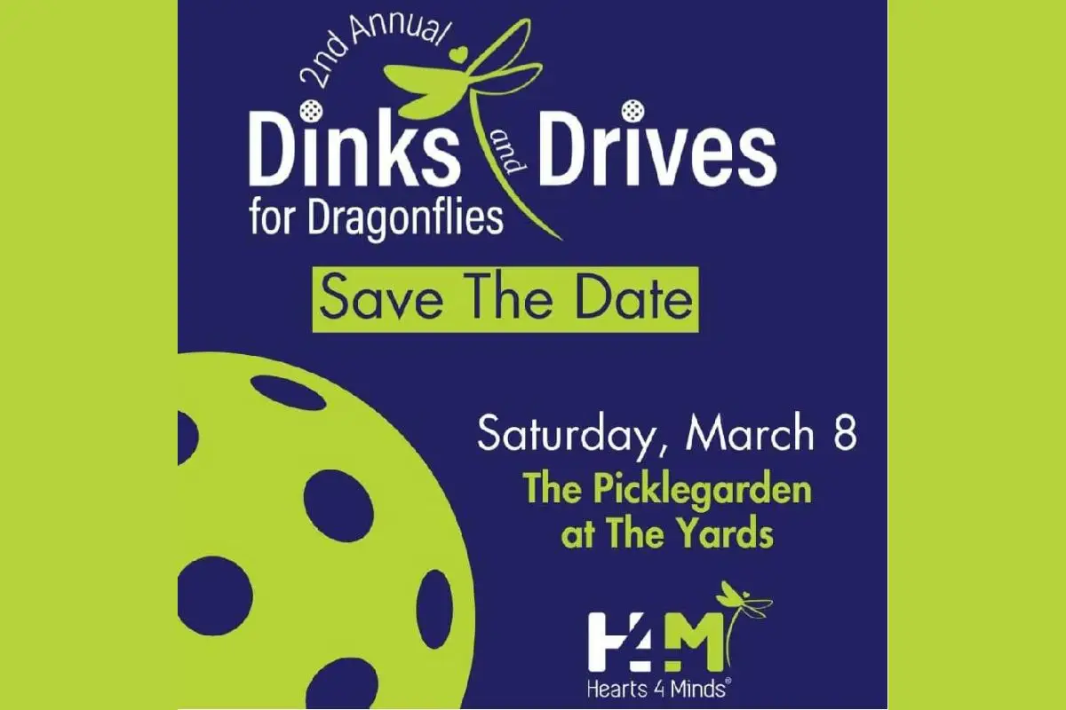 Dinks and Drives Tournament: The 2nd Annual Dinks, Drives, and Dragonflies pickleball event will take place on Saturday, March 8, 2025, at The Picklegarden at The Yards. The event aims to bring the community together while supporting Hearts 4 Minds, a nonprofit focused on mental health awareness and education.
