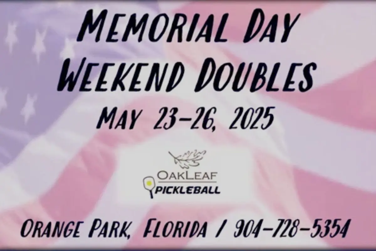 The OakLeaf Memorial Day Doubles Tournament runs from May 23-26, 2025, at OakLeaf Village Athletic Center in Orange Park, Florida. Featuring senior, junior, intermediate, and advanced doubles events, the competition kicks off each day at 9:00 AM.