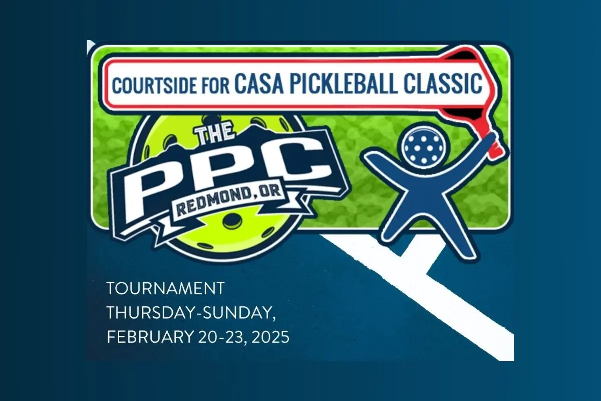 The Courtside for CASA Pickleball Classic, held February 20-23, 2025, at Premier Pickleball Club in Redmond, Oregon, will raise funds for CASA of Central Oregon. Fifty percent of registration fees will benefit children in foster care. The indoor round-robin pickleball tournament is open to all players.