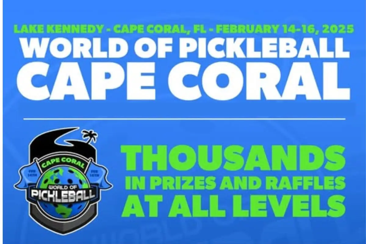 Cape Coral to Host World of Pickleball Tournament: The World of Pickleball tournament in Cape Coral will run from February 14-16, 2025, featuring cash prizes and divisions for players of various skill levels. Participants can compete in Under 3.0, 3.5, 4.0, 4.5, and Open divisions, with events scheduled for Men’s and Women’s Singles on Friday and Men’s and Women’s Doubles on Saturday.