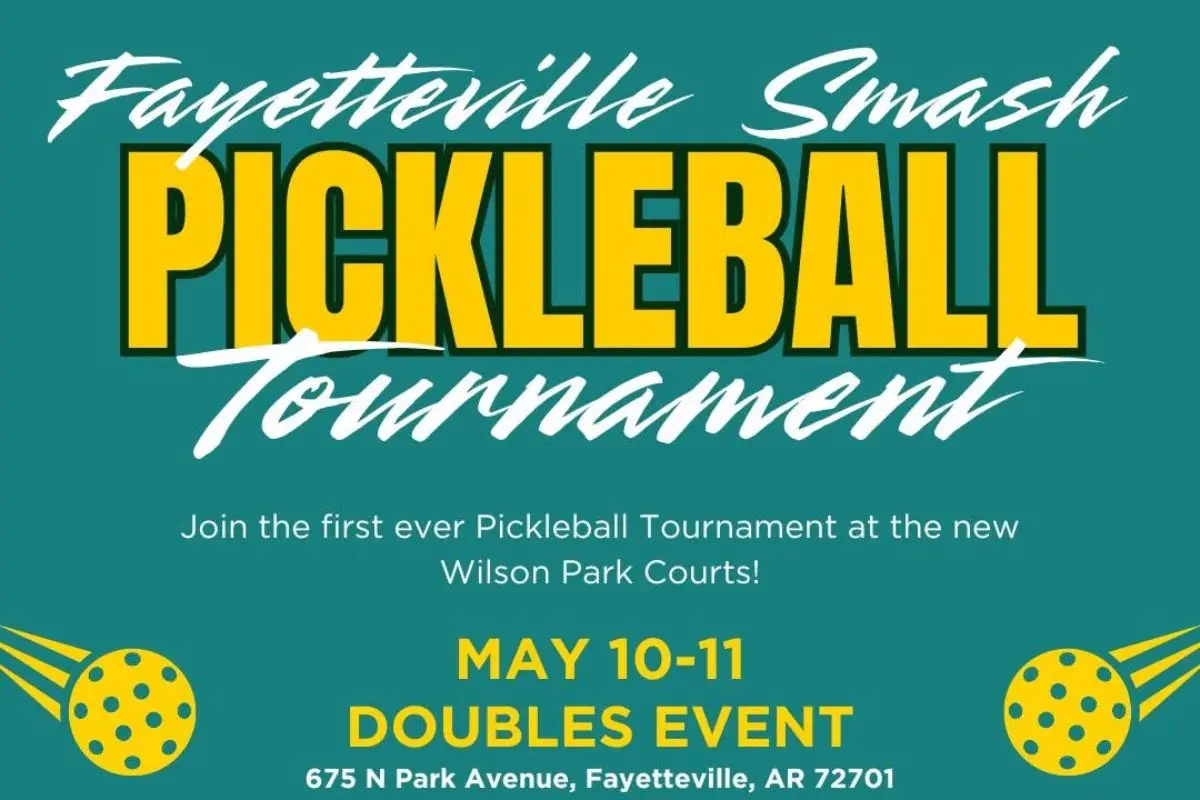 Fayetteville’s first-ever pickleball tournament, the Fayetteville Smash, will take place on May 10-11 at Wilson Park. Registration opens on March 25 and closes on May 7. The event welcomes players of all skill levels and age groups, offering a round robin format with medals for first and second place.