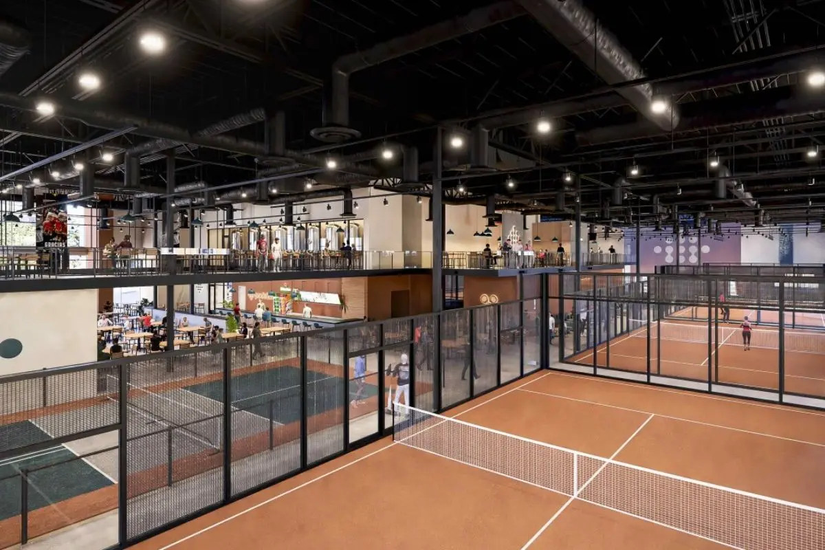 Padeland will feature four padel courts, five pickleball courts, and a full-scale craft brewery with a taproom. Guests will also have access to a restaurant, coffee bar, and wellness lounge. The lounge will include a sauna, cold water therapy, and open areas designed for remote work or study.