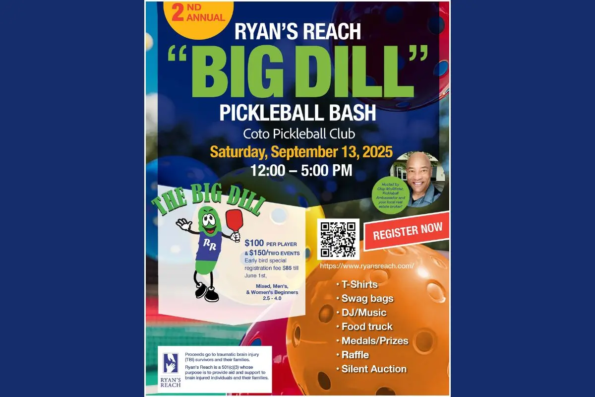 Ryan’s Reach will hold its 2nd Annual “BIG DILL” Pickleball Bash on September 13, 2025, at Coto Pickleball Club, California. The tournament features Men’s, Women’s, and Mixed divisions, including beginner and advanced levels. Registration ends September 9, with fees from $50 to $100 per player. The event combines competition, music, food, and games.