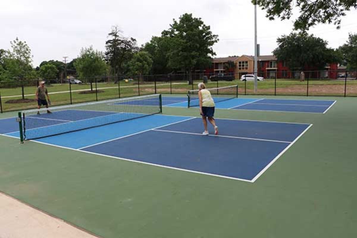 The park’s tennis courts have been renovated with a new playing surface, upgraded fencing, and modern netting. A key feature of the renovation is the conversion of one tennis court into two dedicated pickleball courts.