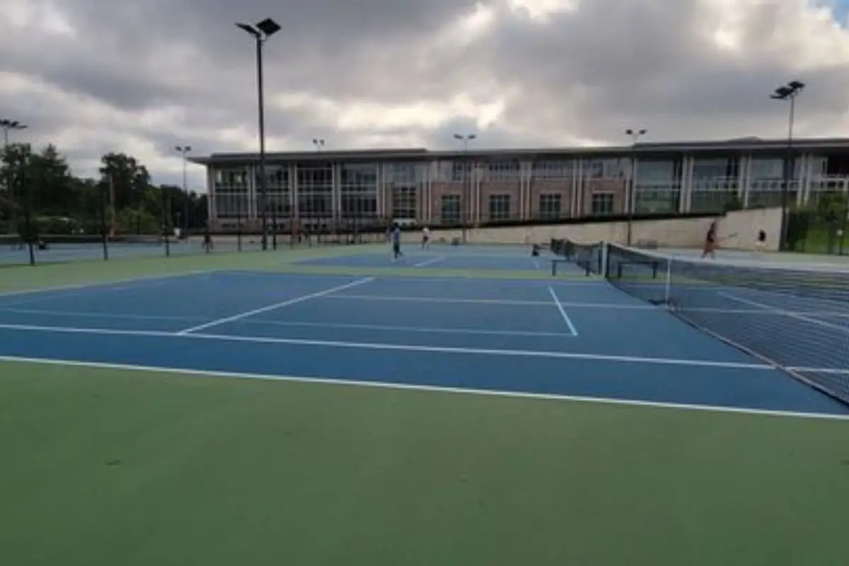 Additionally, the center offers 12 courts with roller nets, painted over tennis courts, providing ample space for games. Players can also enjoy amenities such as restrooms, water stations, and lights for evening play.