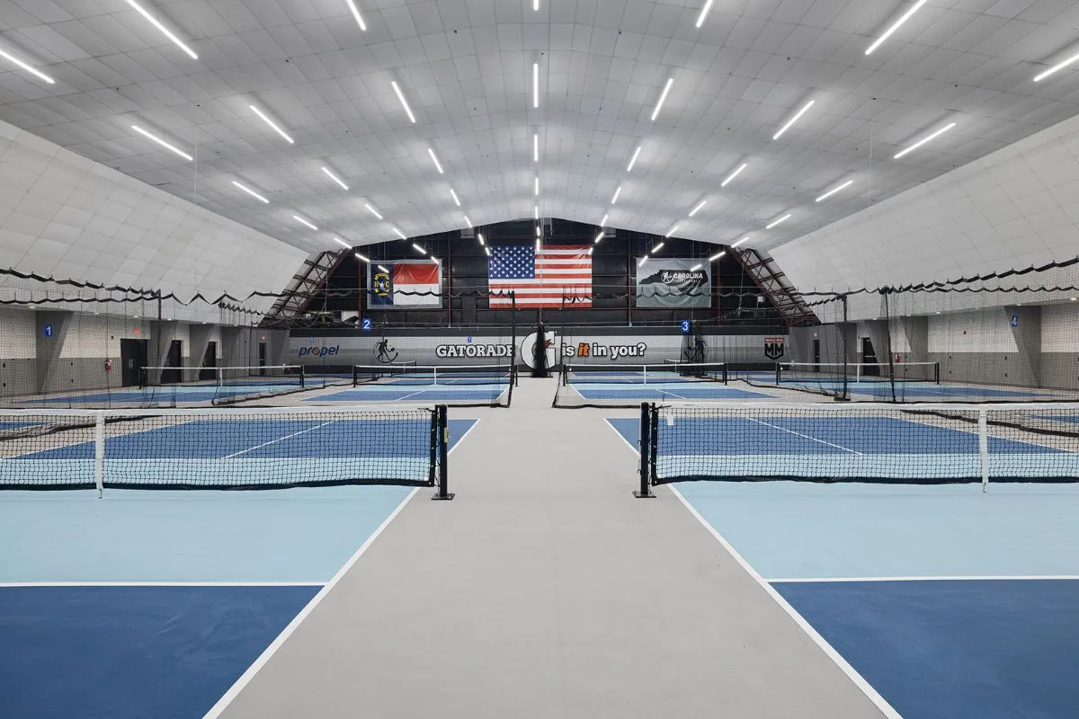 The tournament will take place at the Carolina Pickleball Club, located at 724 Chipola St., Kannapolis, NC. The venue features a pickleball hardcourt surface with 10 indoor courts. There is no parking fee, and ample parking is available at the location. The event will use Franklin X 40 balls, and permanent nets are in place for the tournament.