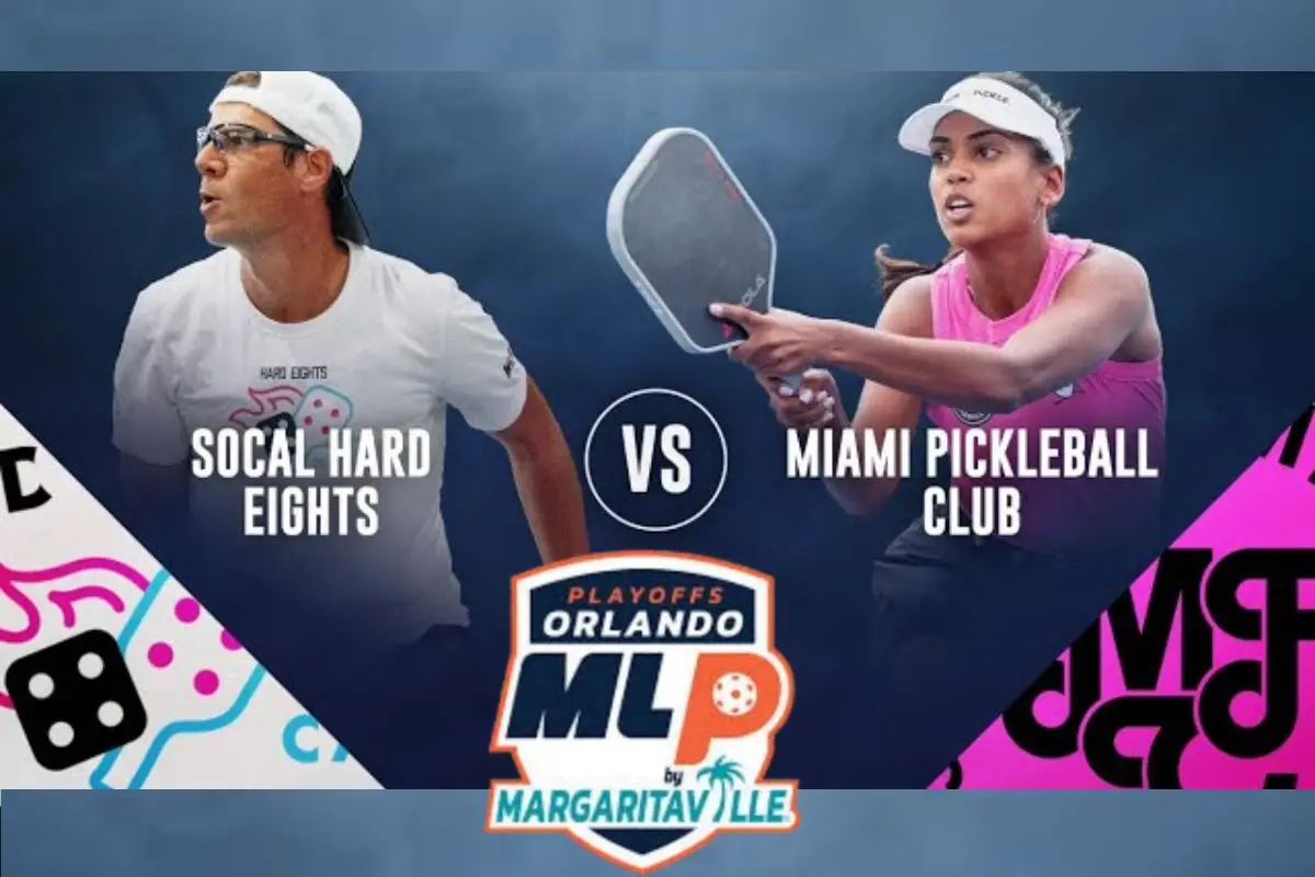 In the Challenger Level of the 2024 MLP Orlando Playoffs, the SoCal Hard Eights will face off against the Miami Pickleball Club at 3:00 PM ET on the Grandstand Court. The Miami Pickleball Club won 3-0 on Day 1 and are looking to continue their momentum.
