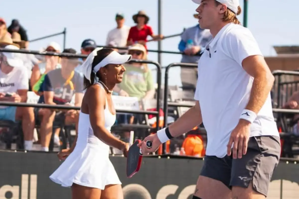 The Round of 16 at the Carvana Mesa Cup 2025 presented by Proton took place Thursday at the Arizona Athletic Grounds, with top teams securing spots in the next round of the Mixed Doubles Pro Main Draw. Tyra Black and Christian Alshon dominated their match, defeating James Ignatowich and Jackie Kawamoto in straight games, 11-6, 11-3.