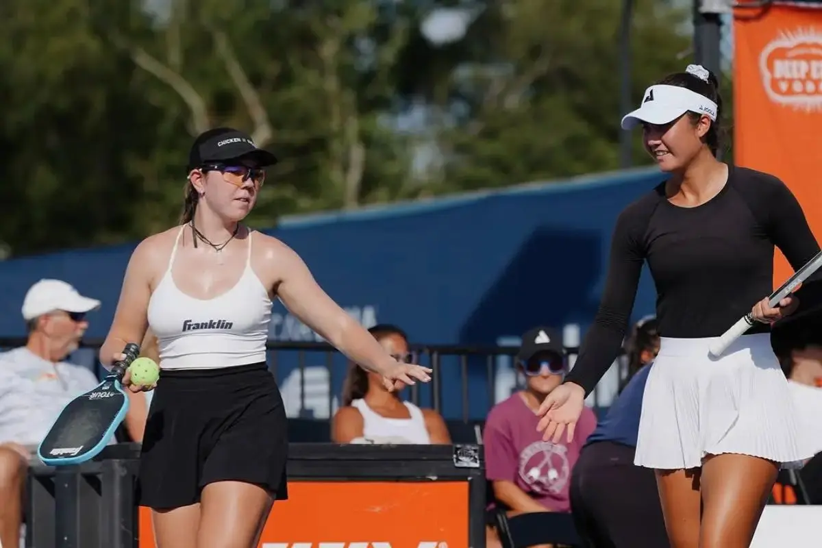 Jorja Johnson and Vivian Glozman battled past Tyra Black and Parris Todd in the women’s doubles quarterfinals at the Carvana Mesa Cup 2025, winning 12-10, 12-14, 11-6. They will now face Anna Bright and Rachel Rohrabacher in the semifinals.