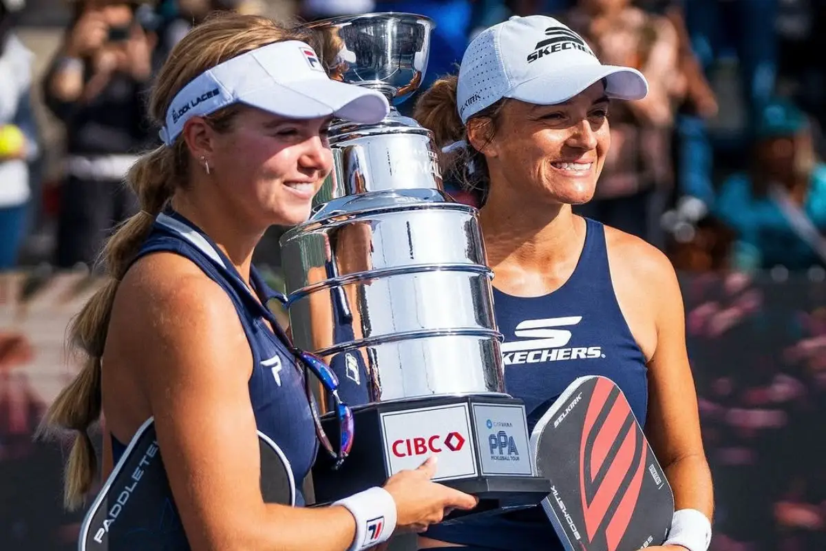 Anna Leigh Waters and Catherine Parenteau Claim PPA Glory: Anna Leigh Waters and Catherine Parenteau began Championship Sunday with an emphatic victory, claiming the women’s doubles title in the CIBC PPA TOUR Finals at San Clemente. The pair avenged their recent Worlds defeat by toppling Anna Bright and Rachel Rohrabacher in four hard-fought games, 6-11, 11-5, 11-5, 12-10. The duo had fallen to “The Girlies” in a three-game clash at Worlds just a month prior, but this time, they overcame an early setback to clinch their 14th title of the year.